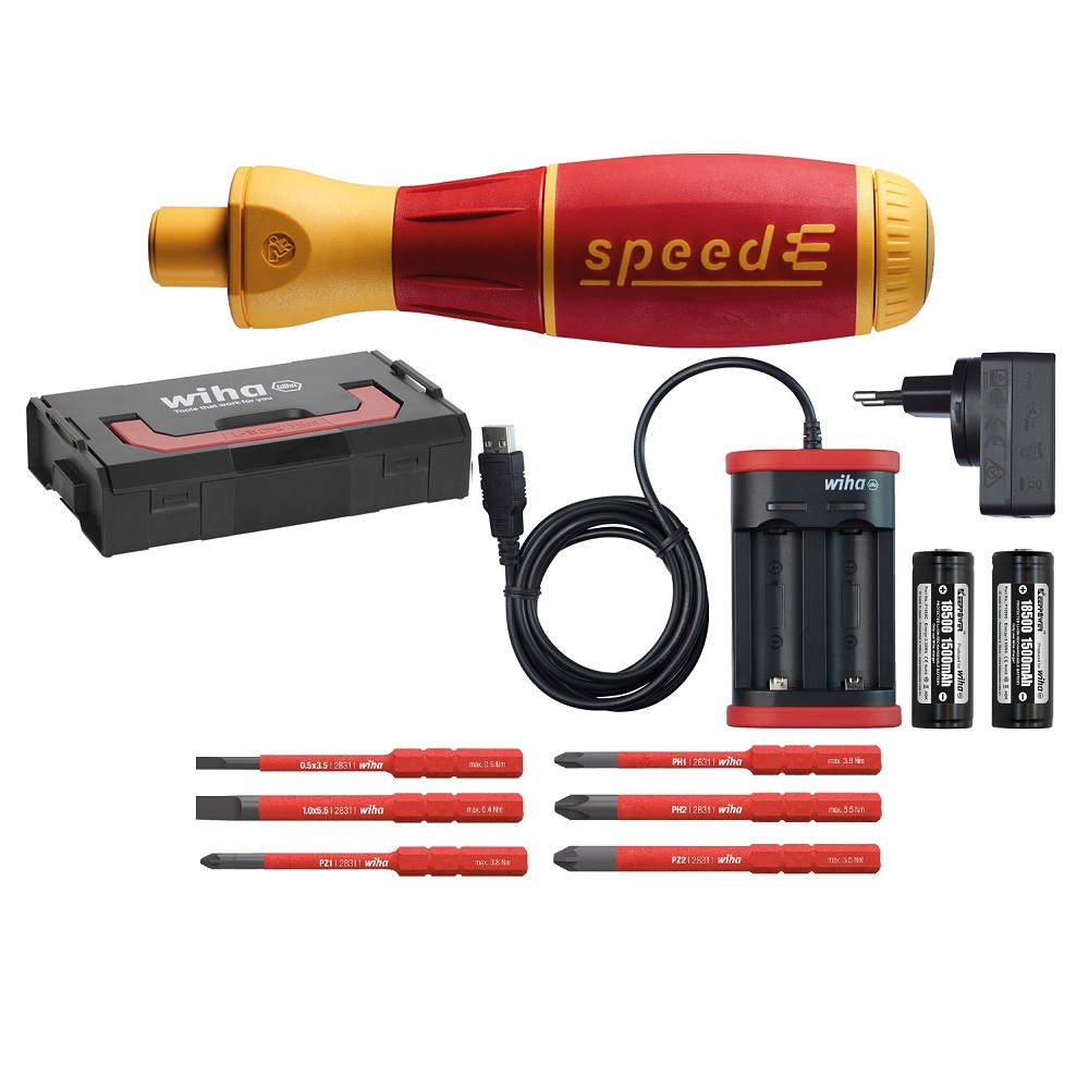 Электроотвертка speedE с набором бит, 9 предметов (WIHA 41911)