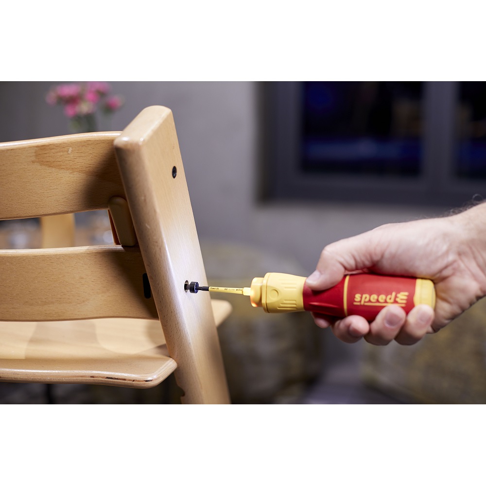 - С электроотверткой speedE II, скорость закручивания винтов увеличивается минимум в три раза по сравнению с обычной отверткой.