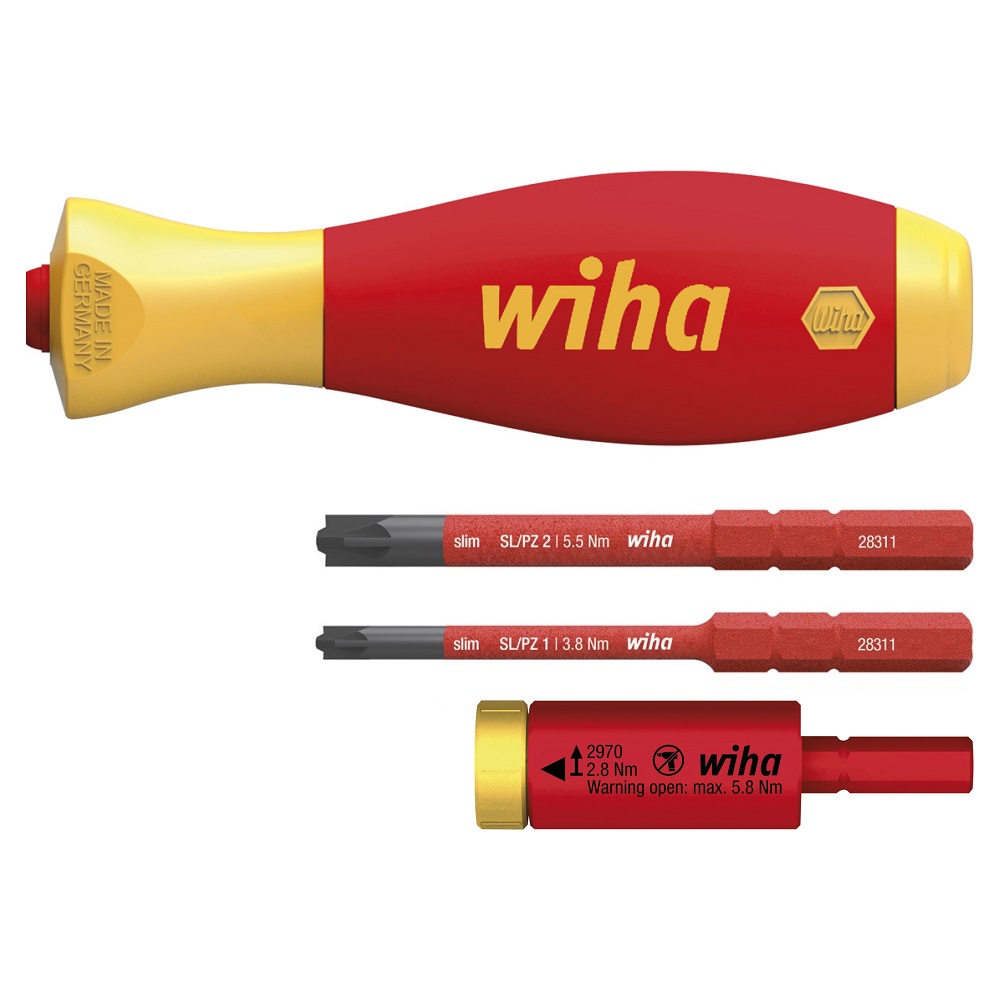 - Ограничитель крутящего момента easyTorque electric, позволяет использовать отвертку с держателем бит slimVario как динамометрический инструмент, что обеспечивает контролируемое затягивание резьбовых соединений при выполнении работ в электроустановках